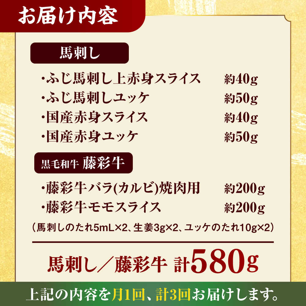 【ふるさと納税】【3回定期便】「熊本特産馬刺しと熊本黒毛和牛」フジチクオリジナル贅沢食べ比べセット 3905【有限会社 スイートサプライなかぞの】[ZDT147]