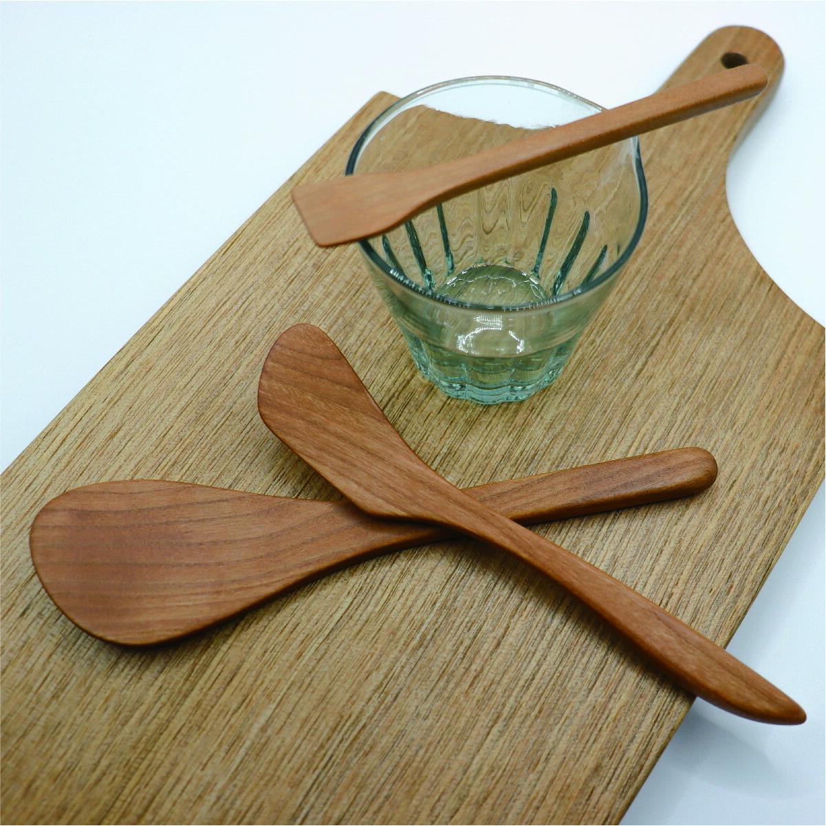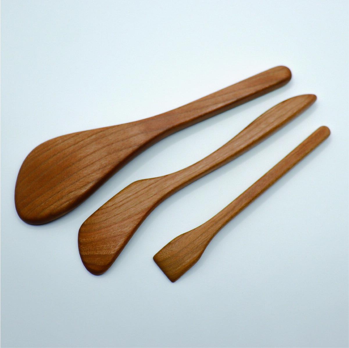 - 【ふるさと納税】工房Baum 味噌ベラ バターナイフ ゆずこしょう さじ 3点セット 手彫り 手作り 木工品 軽い 美しい艶 キッチン用品 ブラックチェリー B18-1
