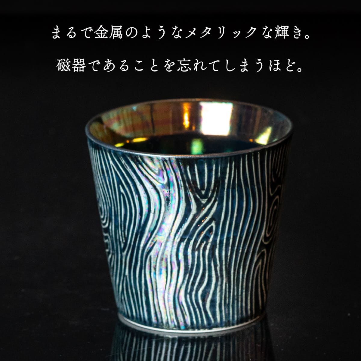 【ふるさと納税】【晩酌を華やかに】メタリックな有田焼 ロックカップ(木目) 黒 & 白 計2個セット 女性にも人気 【喜鶴製陶】軽量 ギフト ペアセット 食器 有田焼 ロックグラス ビアカップ タンブラー A20-641
