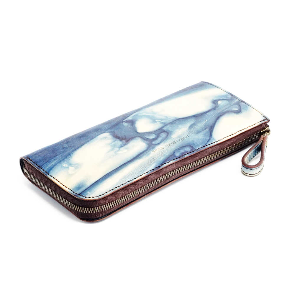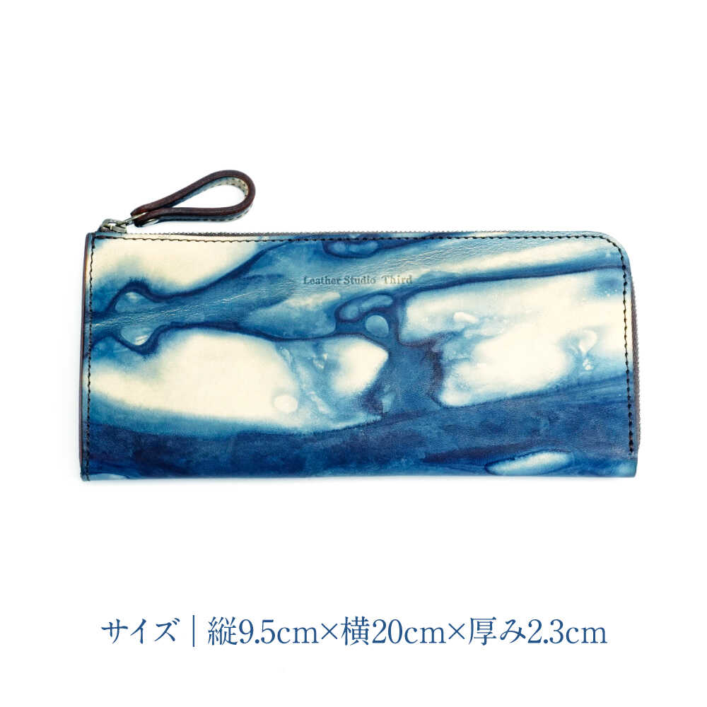 - 【ふるさと納税】L字ファスナー財布「リセス」 薄藍 瀬戸内の空 天然藍染め・福山レザー 自社一貫製造 L字 長財布 財布 ウォレット カードポケット 経年変化 手染め 手擦り 天然藍染め 福山レザー 人気 おすすめ プレゼント 広島県福山市/株式会社サード[BACM008]
