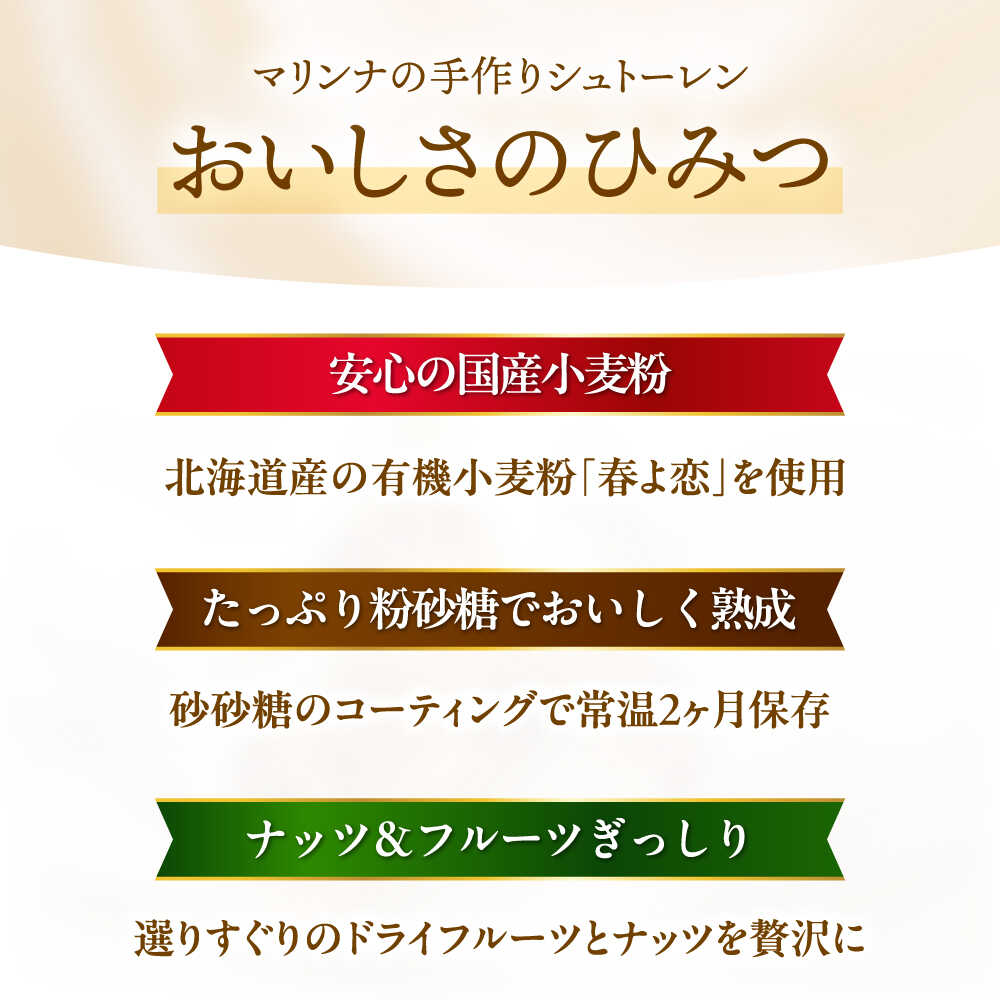 - 【ふるさと納税】【年内発送】【選べる発送時期】ナッツ&フルーツたっぷりシュトーレン 2本セット 約1kg 国産素材使用 シュトーレン クリスマス 焼菓子 スイーツ 洋菓子 ギフト お菓子 菓子 おやつ ドイツパン 定番 手作り 人気 おすすめ ギフト 贈答 高槻マリンナ[AOEN002]