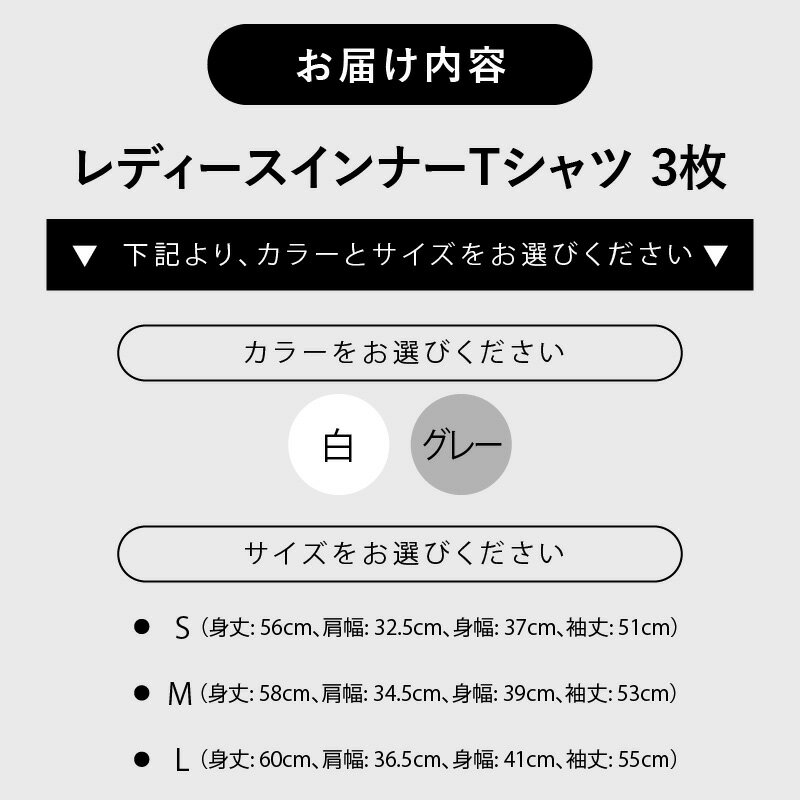 - 【ふるさと納税】レディース Tシャツ 3枚 選べる S / M / L カラー 白 / グレー 裏表なし インナーTシャツ < 長袖 / 綿PU > WOMENS 抗菌 防臭 ファッション 女性 綿 ポリウレタン グッドデザイン賞 ユニバーサルデザイン賞受賞 大阪府 泉佐野市 送料無料