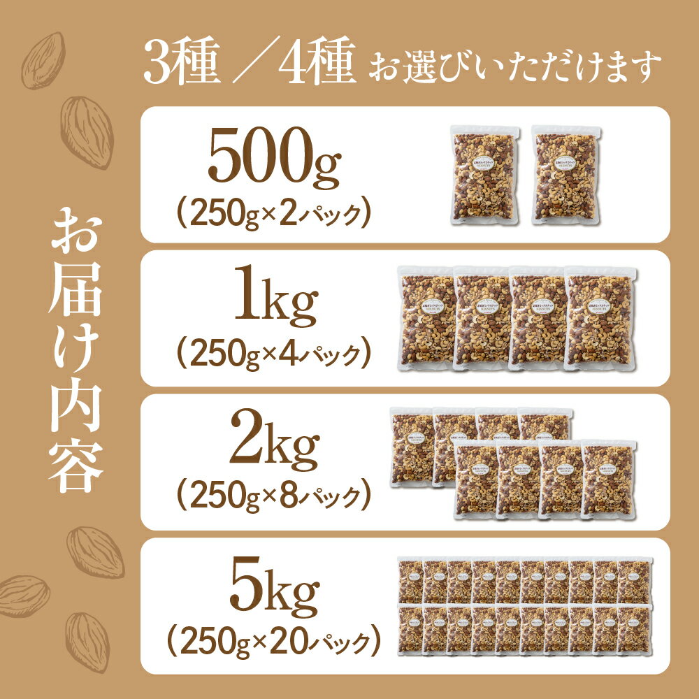 - 4種の素焼きミックスナッツ1kg【アーモンド・クルミ・カシューナッツ・マカダミアナッツ】