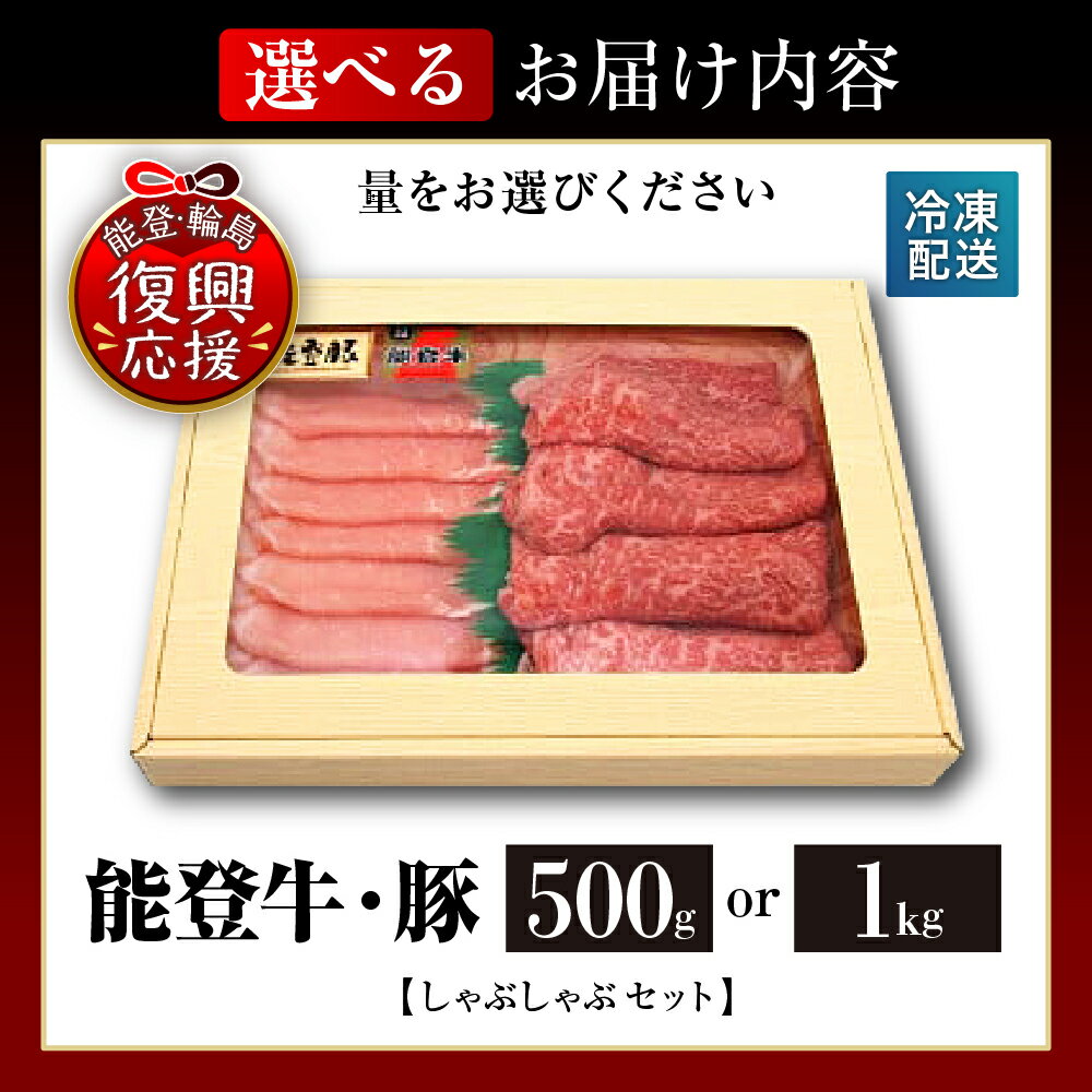 【ふるさと納税】 能登牛 ・ 能登豚 しゃぶしゃぶ セット ( 選べる 500g / 1kg )| 牛肉 豚肉 ブランド牛 ブランド豚 牛モモ 豚ロース 国産牛 国産豚 お取り寄せ 産地直送 送料無料 能登 石川県 輪島市