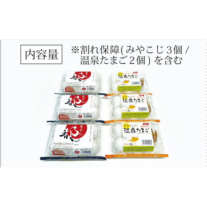 伝承卵「みやこじ」18個(15個+卵割れ補償3個)と「温泉たまご」12個(10個+卵割れ補償2個)の詰合せ No.429
