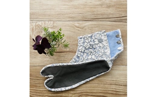 - 可憐なグレーのふちどりのお花柄足袋 【23.0cm】[AB05_03]