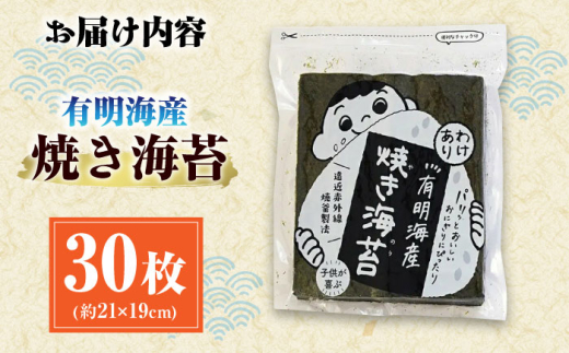 - 【訳あり】有明のり福岡県産 焼海苔 全形30枚 海苔 のり ノリ 海藻 焼き海苔 有明海 訳あり 福岡有明のり 恵方巻き えほうまき 広川町 / 株式会社木村食品 [AFCG017]