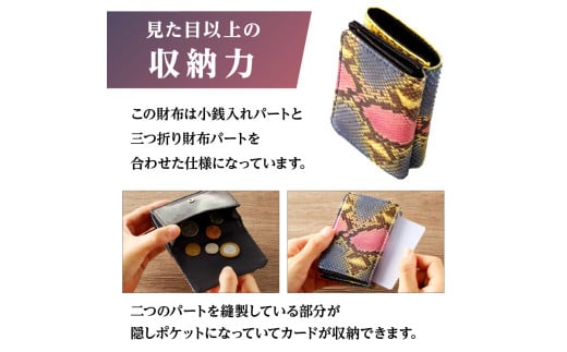 パームウォレット【パイソン(ヘビ革)】ペイント | ハンドメイド ミニウォレット ミニ財布 財布 手のひらサイズ 本革 レザー ギフト プレゼント レディース メンズ