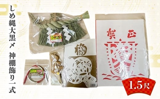 - しめ縄大黒〆1.5尺 神棚飾り一式 しめ縄 神棚 青わら 取付 御神酒口 正月 新潟 越後