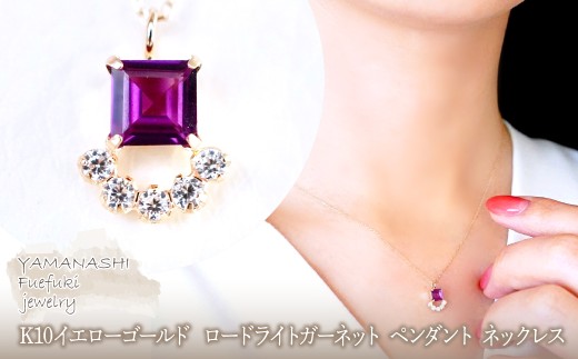 - 【ジュエリー】K10 イエローゴールド ロードライトガーネット ペンダント ネックレス 保証書付 SMK-5221 242-013-d