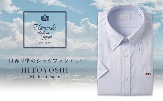くまモン HITOYOSHI シャツ 半袖 ブルードビーチェック 紳士用 1枚 M (39)