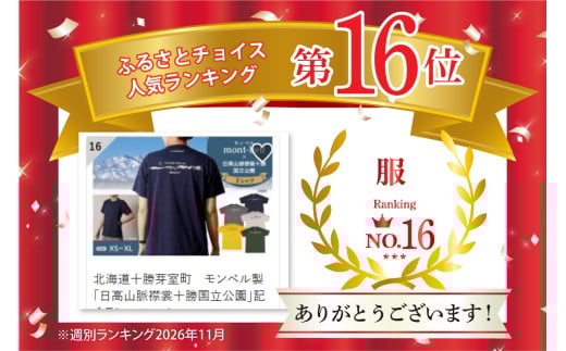 北海道十勝芽室町 モンベル製「日高山脈襟裳十勝国立公園」記念Tシャツ バックロゴ【選べるサイズ・カラー】me003-131c