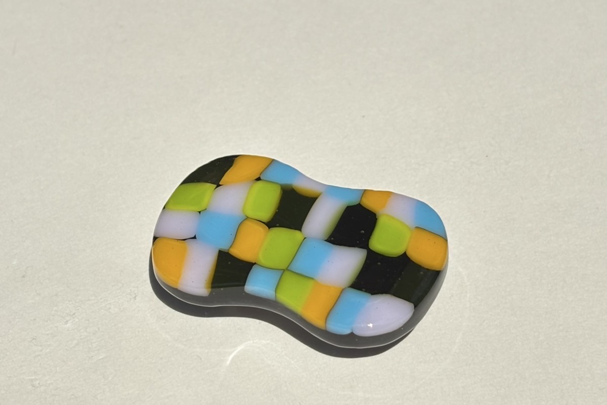 帯留め「モザイク・S」ガラス工芸品 色ガラス 春カラー 和装小物 SV00019