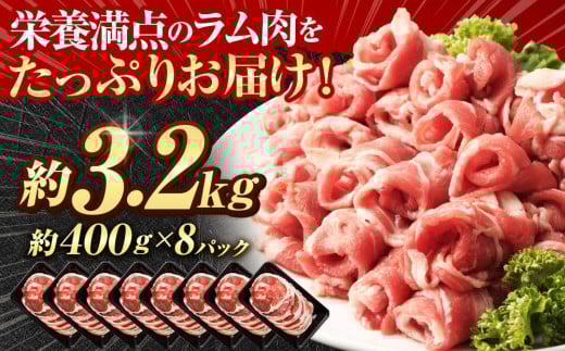 ラムロール肉スライス 3.2kg(400g×8p入り)【道産子の伝統食材】 北海道 ジンギスカン ヘルシー ラム ラム肉 焼肉 肉 バーベキュー