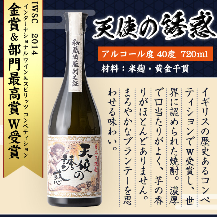 - No.1110 《数量限定》焼酎飲み比べ「天使の誘惑」「富乃宝山」(720ml×2本・計1440ml)と専用グラス2個セット!国産 九州 鹿児島県 焼酎 芋焼酎 酒 アルコール 芋 薩摩芋 地酒 お土産 セット【宮下酒店】