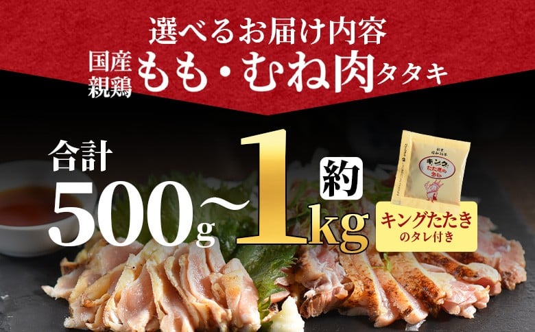 選べる< 国産親鳥タタキセット>※ご希望のセット出荷時期をお選びください 【 国産 九州産 お肉 たたき タタキ 鶏刺し 鶏さし 鳥刺し 鳥さし とりさし タレ付き タレ 冷凍 とり肉 鶏肉 鶏もも 鶏むね モモ肉 ムネ肉 個包装 小分け おかず おつまみ 惣菜 晩酌 加工品 】