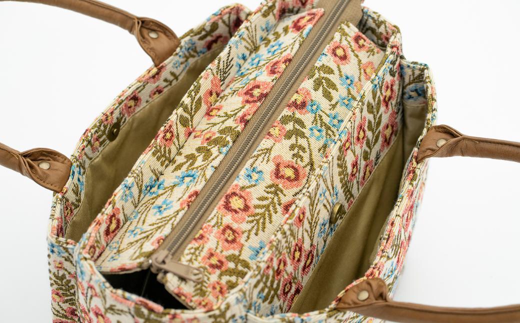 - 【数量限定】 バッグ 和装のひぐち オリジナル手作りバック65 バック カバン 鞄 かばん 手づくり 手作り ファッション おしゃれ ゴブラン織り お取り寄せ 高知県安芸市 トートバッグ 底幅 14cm 箱型 重厚 可愛い 天然皮革 持ち手 ポケット マグネット 内袋 ファスナー スマートフォン 高さ 21cm 横幅 24cm マチ 11cm 26cm レザー 和風 和柄 安芸市 高知県