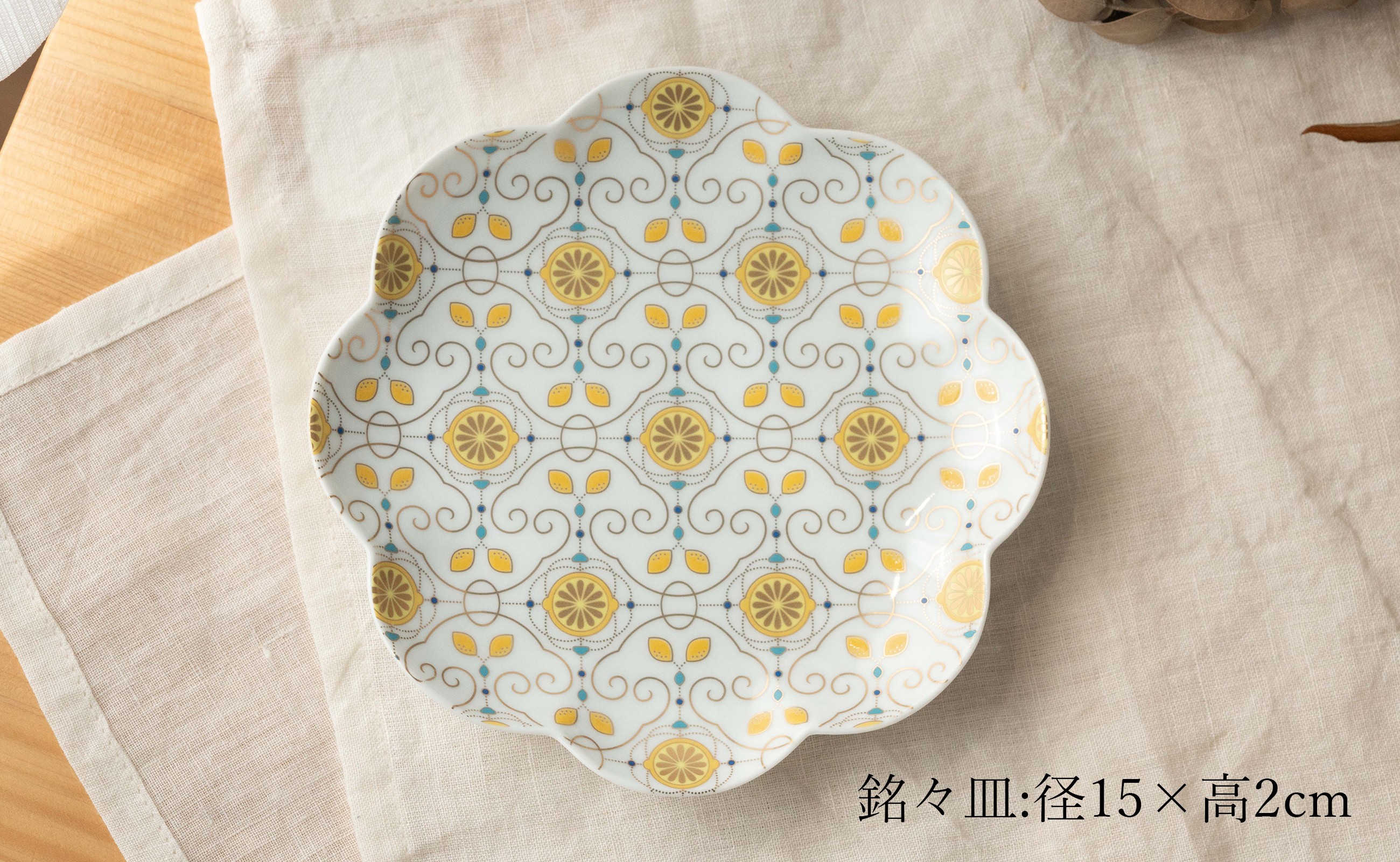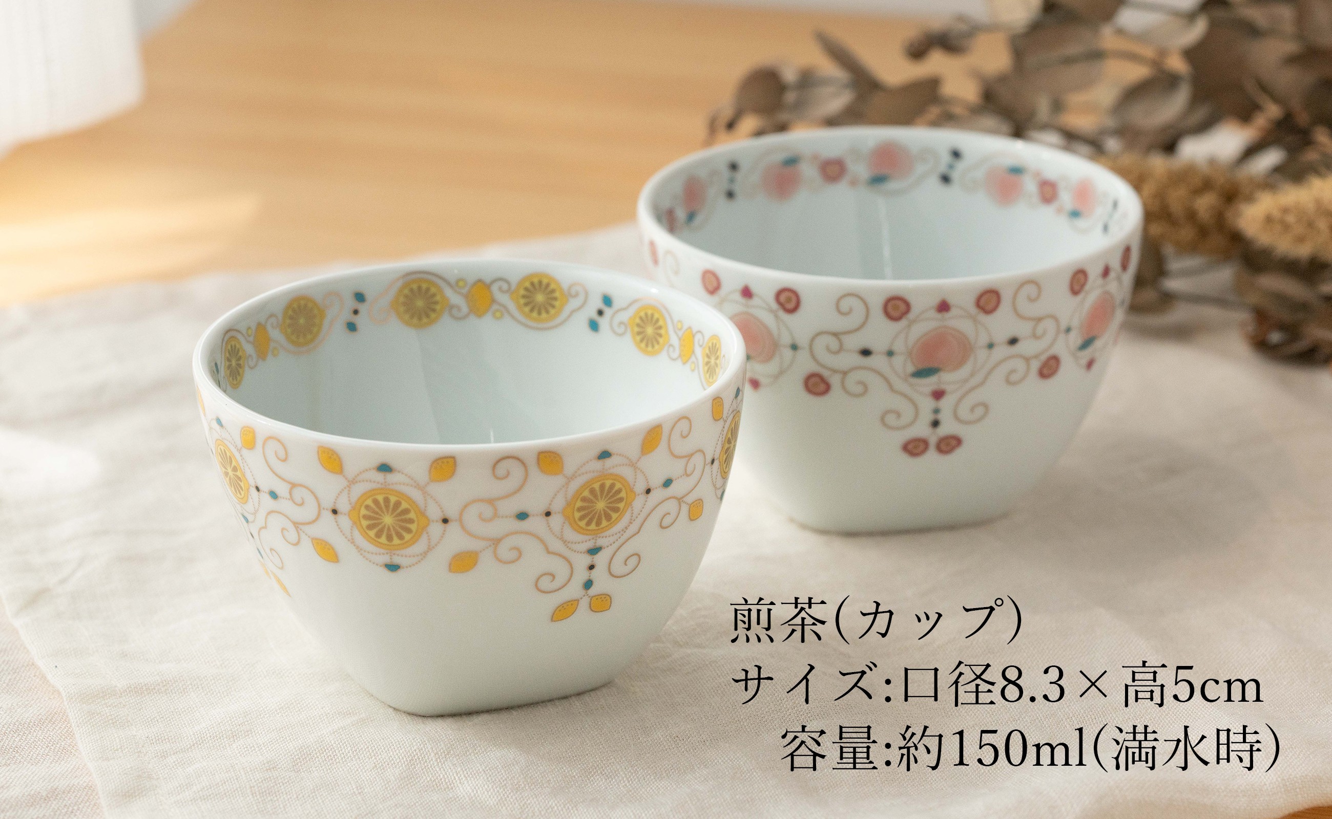 - 【セット】 有田焼 鍋島様式 「くだもの」 ティータイム 10点セット ( 銘々皿2枚 カップ2点 細湯呑み2点 菓子皿2枚 小皿2枚 ) もも れもん 賞美堂本店