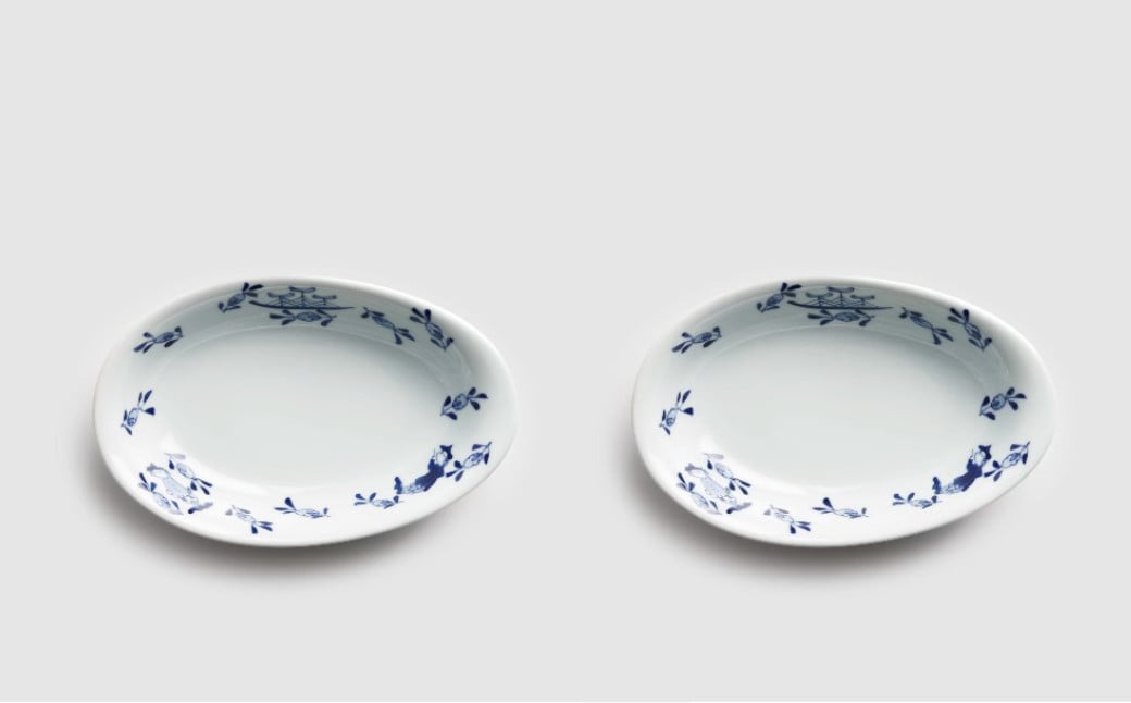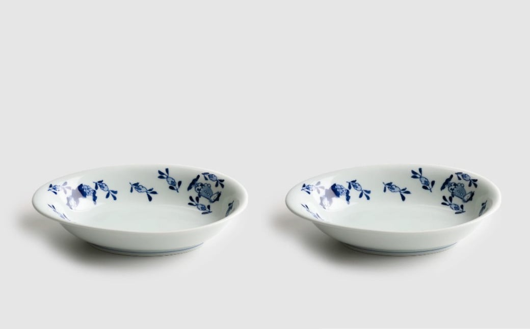 有田焼【しん窯】草花異人 - たまご型カレー皿 2枚セット