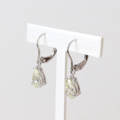 - K18WGダイヤモンド1ct×1ctペアシェイプピアス 外れにくいジャーマンフック