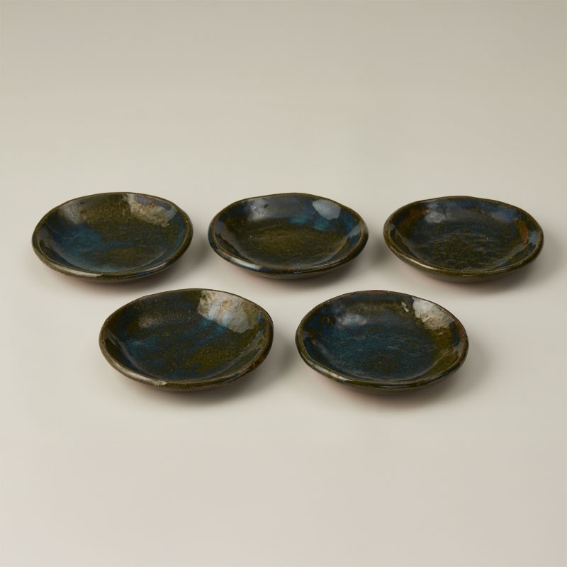 - 織部 銘々皿五客 作者:加藤 裕子 / 美濃桃山陶 陶芸 陶器 伝統工芸 焼物 【岐阜県 可児市 陶芸品 1点 限定 チョイス限定 陶芸品 ギフト プレゼント 雑貨 食器】