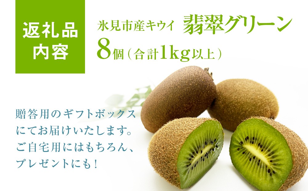 - 富山県産キウイ(翡翠グリーン)8個(1kg以上)|数量限定 希少 国産 甘い 氷見キウイランド ギフトボックス入