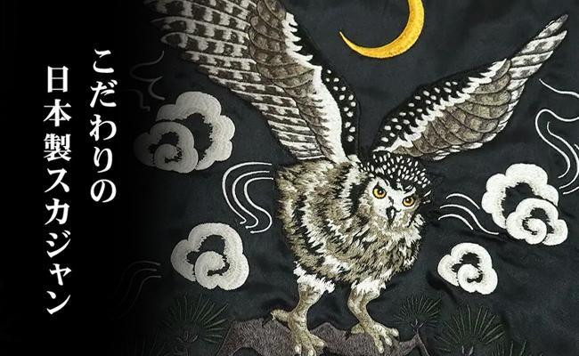 伊賀くみひも 梟スカジャン 男女兼用【タイトフィット/サイズ選択可】