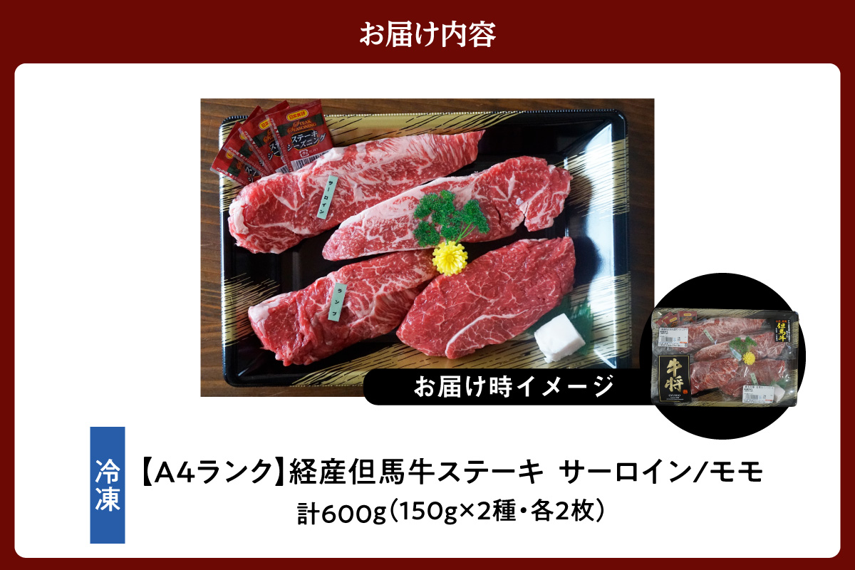 - 【但馬牛 経産牛 ステーキ 食べ比べ サーロイン150g×2 モモ150g×2 合計4枚 600g】経産但馬牛 ステーキ おすすめ 但馬牛 希少部位 牛肉 ブランド 和牛 冷凍 産地直送 但馬 神戸 兵庫県 香美町 村岡 牛将 村岡ファームガーデン 02-29