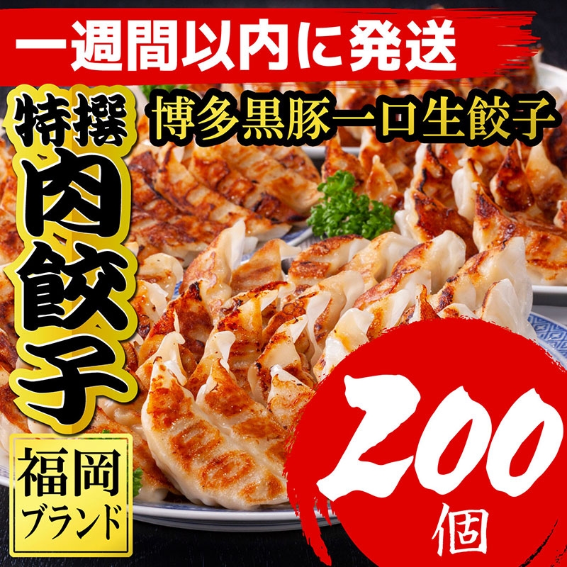 - 【200個!!】【福岡ブランド】博多黒豚一口生餃子 8パック小分 福岡県産ラー麦皮使用 創業40年以上福岡会社製造 【1週間以内に発送!】