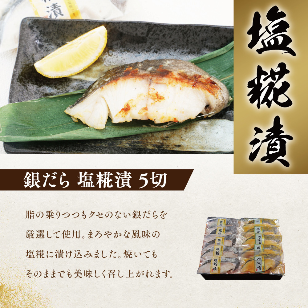 銀だら 西京 塩糀 漬け 10切れ (2種類×5切れ) セット 詰め合わせ 塩こうじ 銀鱈 漬魚 焼き魚 魚 魚介 魚介類 食べ比べ 簡単 時短 贈り物 贈答用 ギフト プレゼント 加工食品 海鮮セット