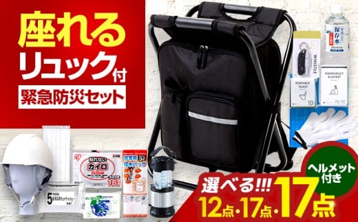 イス型リュック防災 緊急防災セット 17点 9-1500e 災害時 避難 防災グッズ 備え 大雨 洪水 台風 災害 避難 / 小浜市 / 岸田産業 [BFDJ004-3]