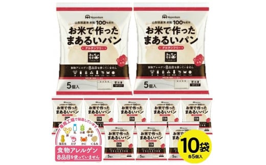パン 冷凍 50個 5個 10袋 グルテンフリー ぱん 米 米粉 山形県産米 100% アレルギー対応 小麦 卵 乳 不使用 もっちり 特定原材料8品目不使用 アレルゲン不使用 自然解凍 東北日本ハム(日本ハムマーケティング) 山形 酒田 SC0357