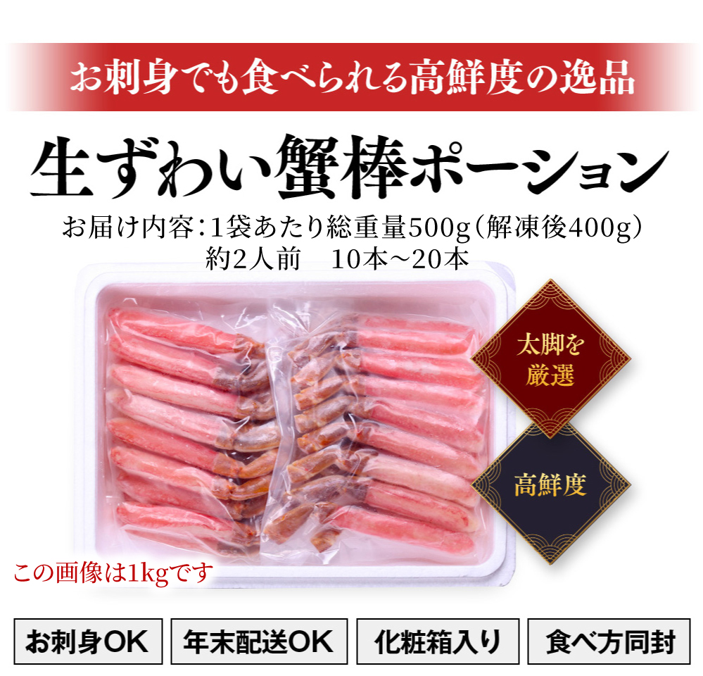【12月26日~31日着(指定日不可)】年内お届け先行予約受付中!【お刺身OK】生ずわい蟹太脚棒ポーション(殻剥き)総重量1.5kg(解凍後1.2kg) [024-c322-b]