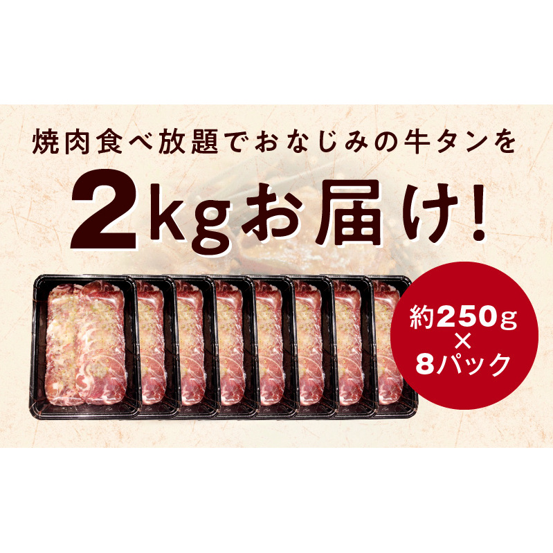 ねぎ塩 牛たん(成型)合計 2kg 小分け 250g×8P【牛タン 牛肉 焼肉用 薄切り 訳あり サイズ不揃い】 015B575