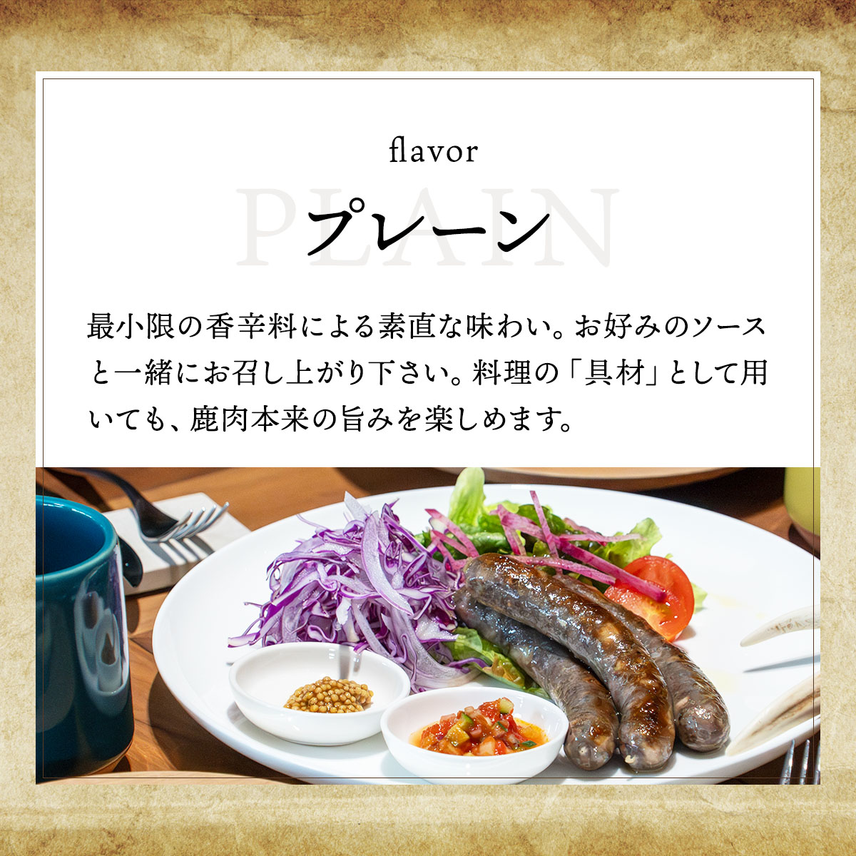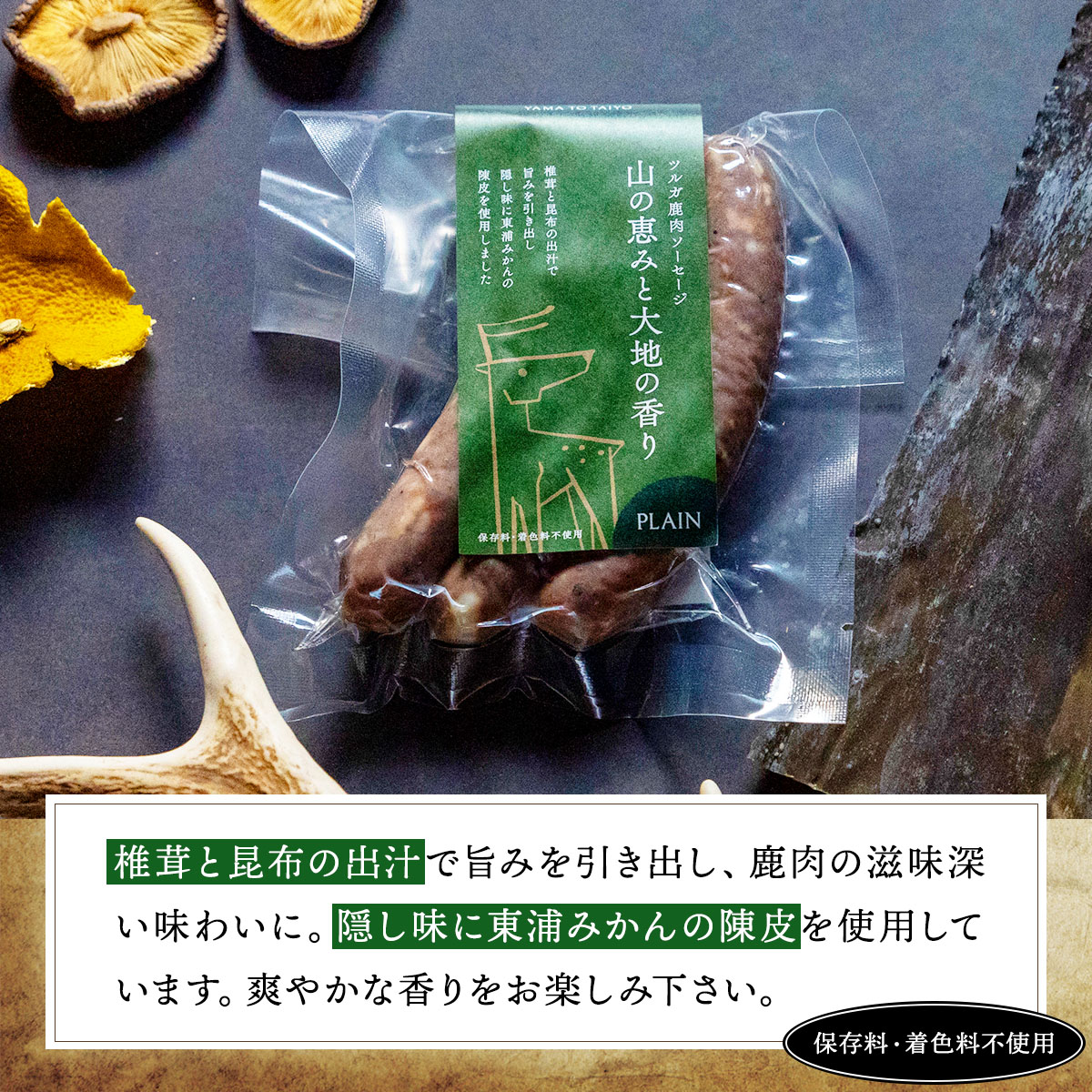 - 【定期便12回】山と太陽 鹿肉ソーセージ「山の恵みと大地の香り」プレーン3本×2袋 【 肉 鹿肉 ソーセージ お肉 具材 おつまみ ジビエ お中元 お歳暮 ギフト 贈り物 定期便】[070-t12-a002]【敦賀市ふるさと納税】