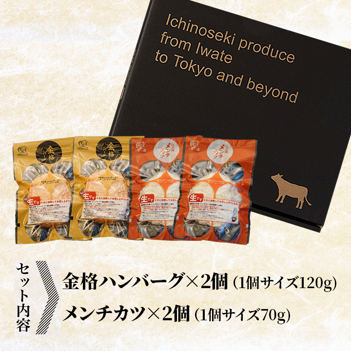 - 《格之進》惣菜お試しセット 【金格ハンバーグ2個・メンチカツ2個】