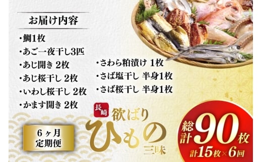 - 干物 セット 欲ばり平戸ひもの三昧 9種 詰め合わせ 6回 定期便 [篠崎海産物店 長崎県 平戸市 hr42bgy410149] ひもの 鯛 タイ あご あじ いわし かます さわら さば 朝食 一夜干し 魚介 あじの開き おつまみ つまみ ふっくら おかず 焼くだけ