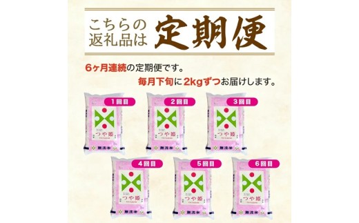【6回定期便】無洗米 特別栽培米つや姫 2kg×6回(計12kg) TO SF0305
