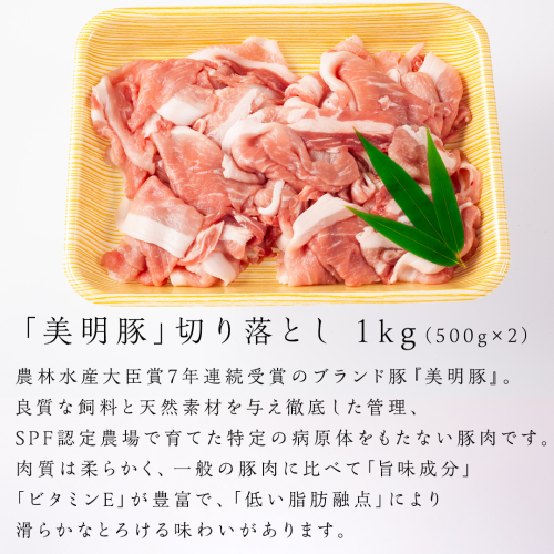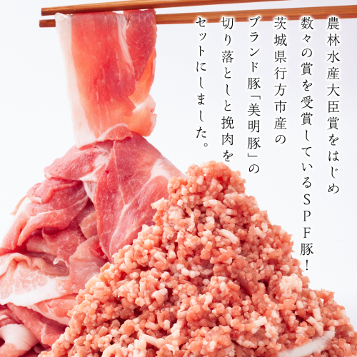 - 美明豚 切り落とし 1kg & 挽肉 1kg 計 2kg【茨城県共通返礼品 行方市】 豚肉 国産 銘柄 お手頃 グルメ 茨城県 料理 お肉 肉 豚 ひき肉 ミンチ ミンチ肉 豚こま 豚こま切れ 小間切れ こま切れ ブランド豚 冷凍 小分け [CV003sa]