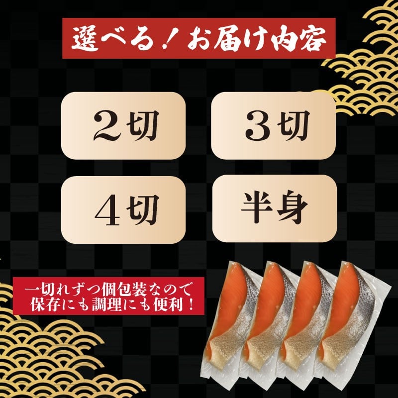 - 塩引き鮭 切り身 選べる容量 2切~半身 冷凍 個包装 国産 サーモン さかな おかず 海産物 食品 小分け 真空パック 惣菜 お酒のあて 塩引き 鮭 半身 切り身 お試し 一人暮らし 贈答 ギフト 母の日 佐々木食品 新潟 新発田 魚介 sasaki004P