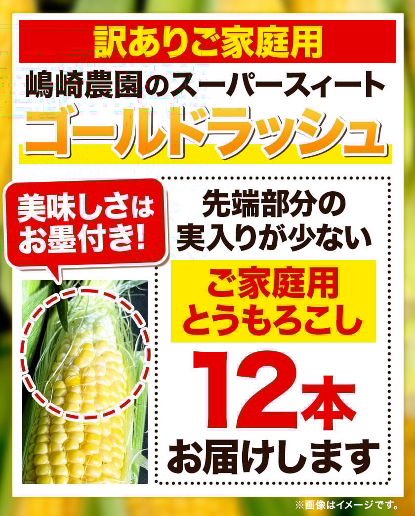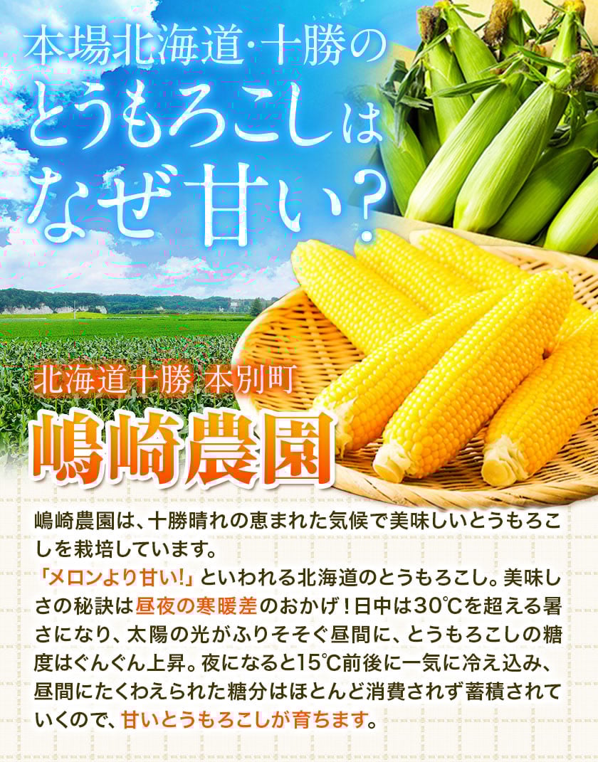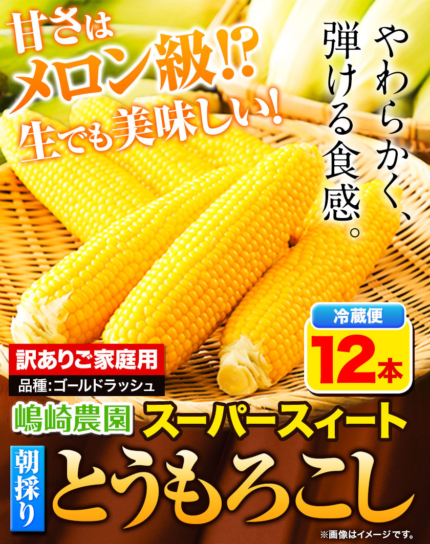 【訳あり】家庭用とうもろこし12本 《2026年8月上旬-9月上旬頃出荷》嶋崎農園 北海道 本別町北海道 十勝 本別町産 スーパースイート トウモロコシ 一番果 冷蔵便 甘い