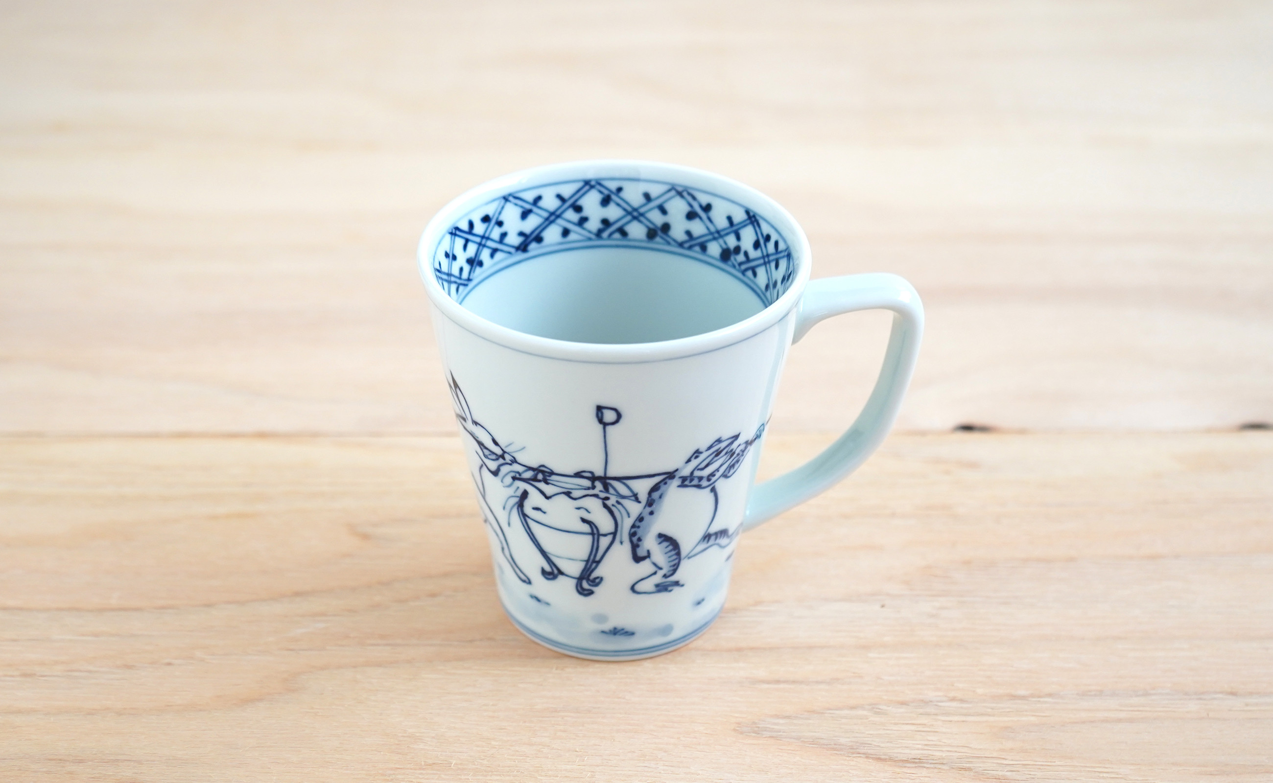 - 有田焼 染付鳥獣戯画 酒樽ゆったりマグカップ よう楽庵・たかす A22-37