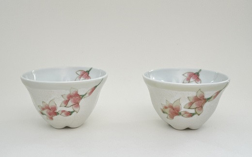 - 田清窯 有田焼 煌めく木蓮花 湯呑 2個セット 和食器 食器 うつわ 器 花 桜 ピンク かわいい おしゃれ ゆのみ カップ コップ ペアセット ギフト 贈答 A22-93