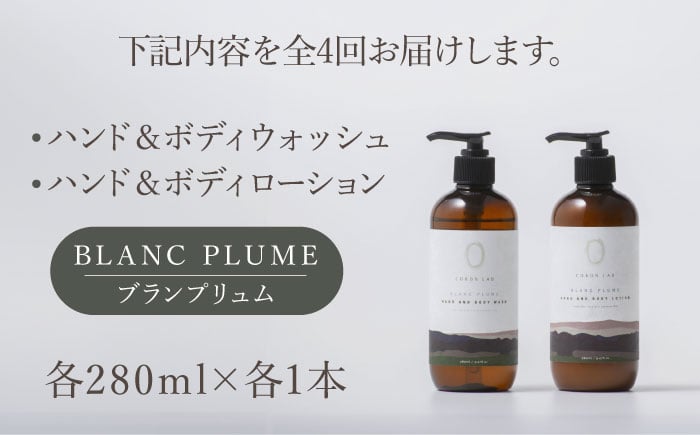 【全4回定期便】COKONLAB ハンド&ボディウォッシュ・ローション ブランプリュム280ml 2本セット【株式会社 あつまるホールディングス NSP山鹿工場】 [ZBR033] 化粧品 コスメ 美容 国産 ボディケア ハンドケア