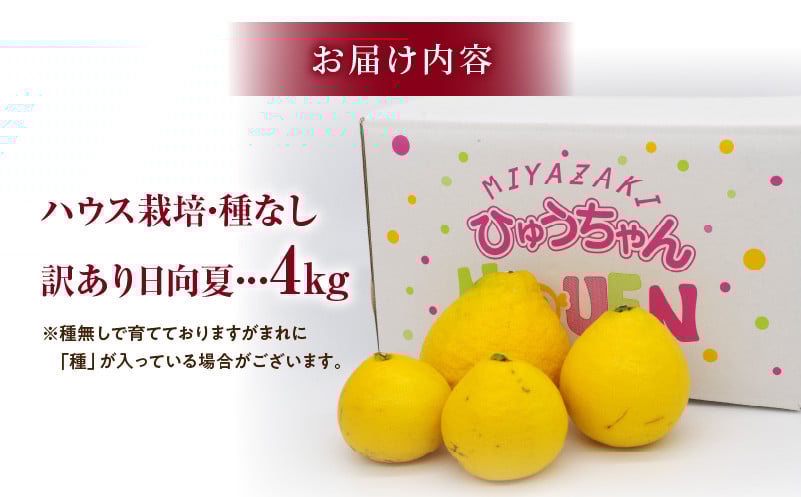 - 《2026年発送先行予約》【数量・期間限定】【訳あり】ハウス種無し日向夏 家庭用(大~小混4kg)_M157-001_01