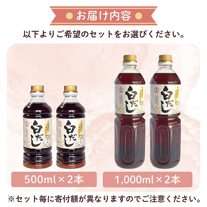 - No.1137/1303 <選べる>さくら白だし(500ml×2本/1000ml×2本) 九州 鹿児島 だし 出汁 白だし 白出汁 調味料 ストレート 鰹ダシ 鰹だし 鰹 うどん だし巻き卵【伊集院食品工業所】