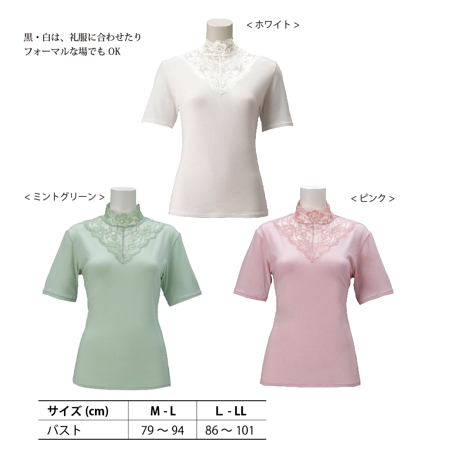 - カットソー インナー 半袖 ハイネック 1着 ホワイト 選べる サイズ M-L L-LL トップス 衣類 肌着 レディース ジャケット イン 白 白色 礼服 仕事着 オフィス カジュアル エレガント フォーマル 母の日ギフト 母の日 ビレーヌ 美・REINE 滋賀 彦根