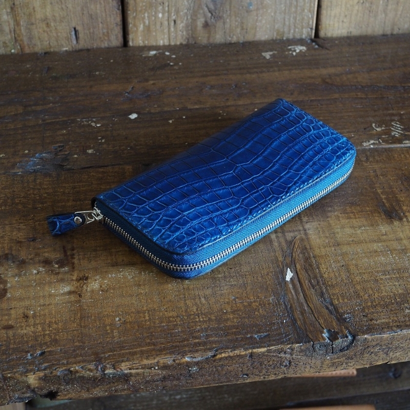 - クロコダイルラウンドファスナー長財布 選べる 2色 (藍染め仕様 生成り色仕様) 本革 クロコダイル ヌメ革 鰐 高級 ラウンドファスナー 財布 レザー 長財布 ワニ本革 ワニ革 手作り メンズ レディース プレゼント ギフト 贈り物 お祝い 誕生日 記念日 金運 風水 八幡市 京都 革工房むくり