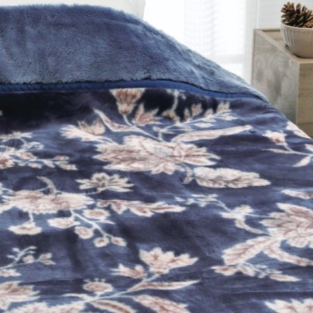 泉大津市産 マイヤー綿毛布 シングルサイズ 更紗2 ブルー 82717 BL[0389]