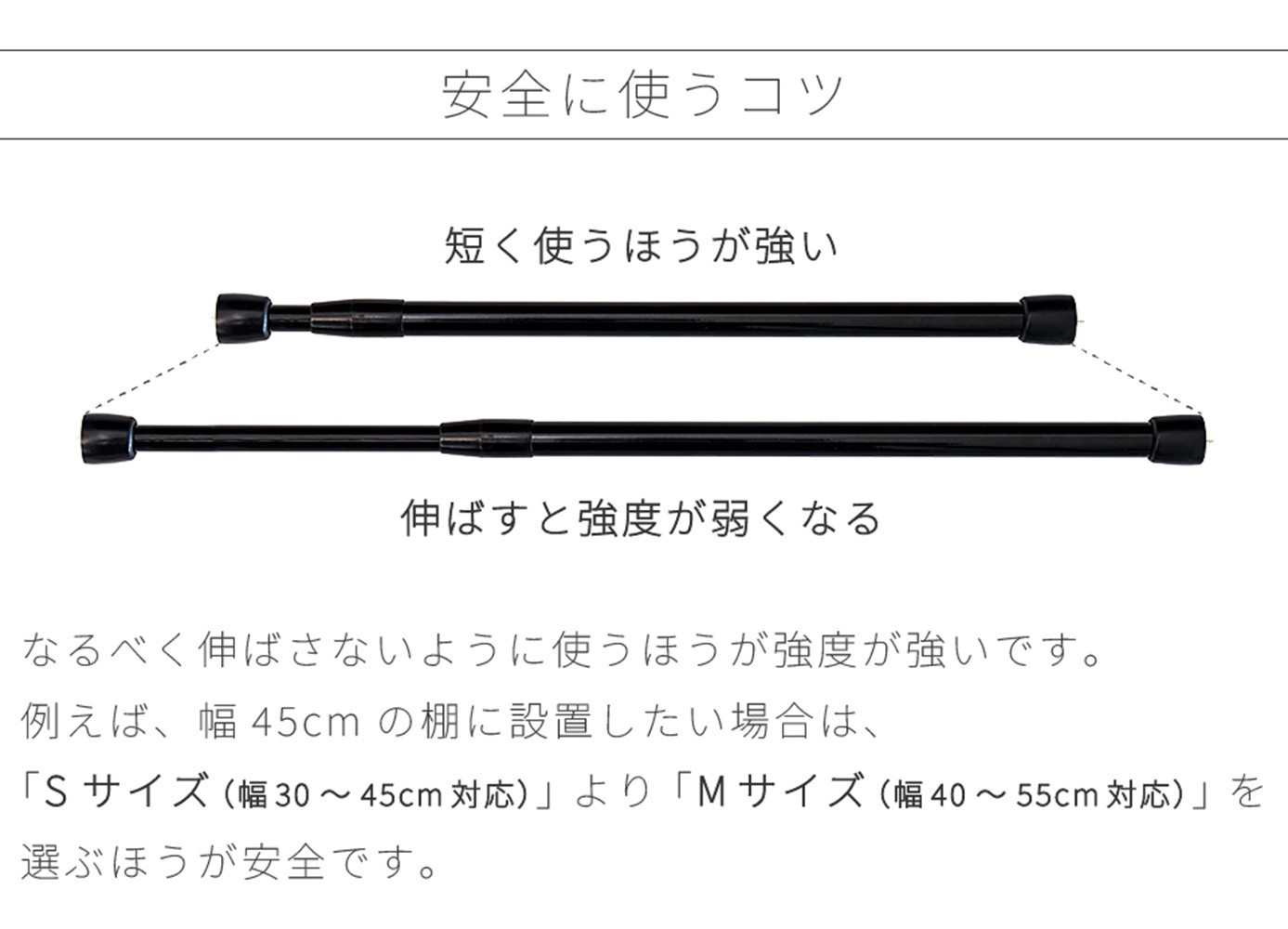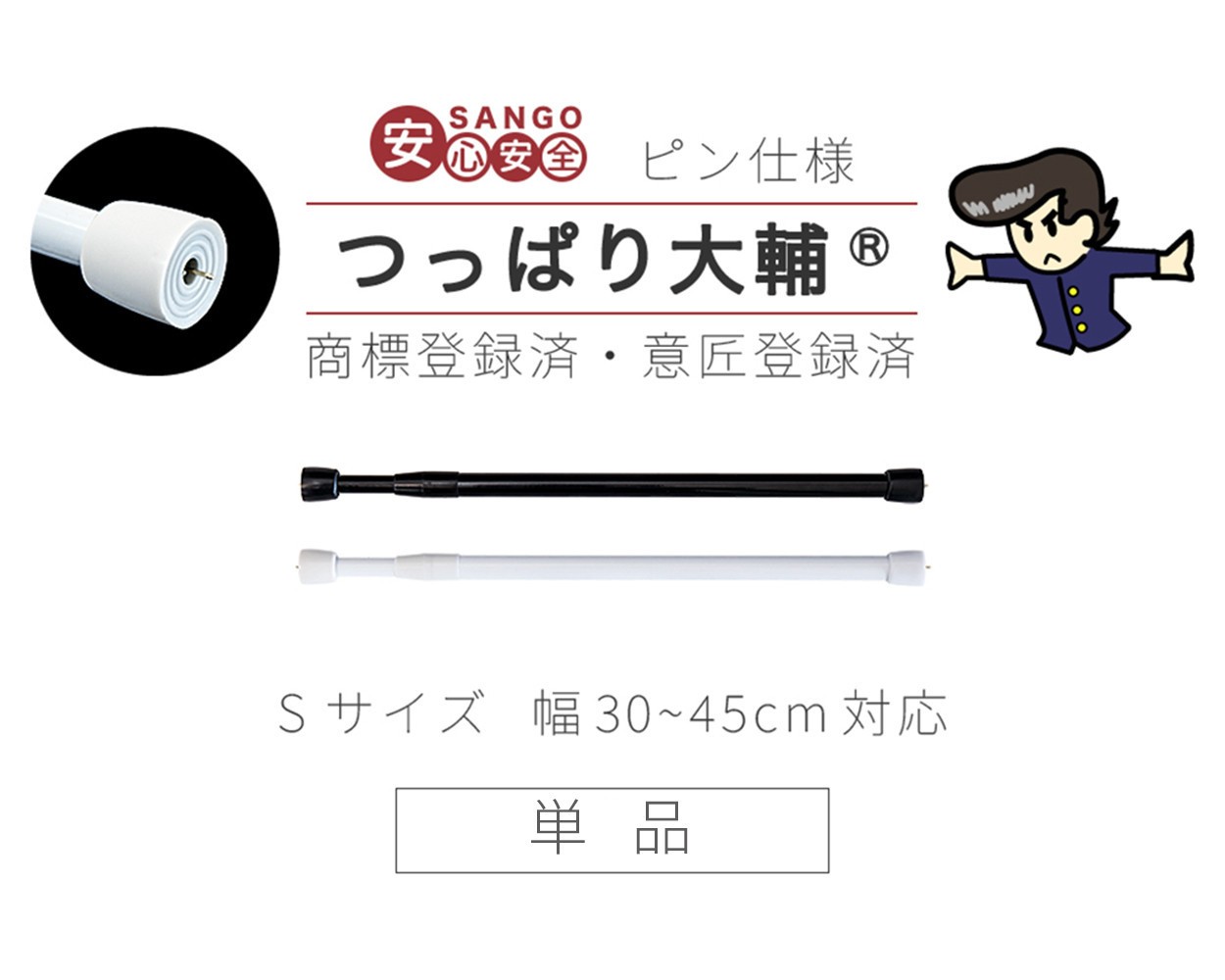 [選べるカラ―]つっぱり大輔 押しピン仕様 Sサイズ 1本 幅30~45cm対応 落ちない突っ張り棒 安心 安全 落下防止グッズ